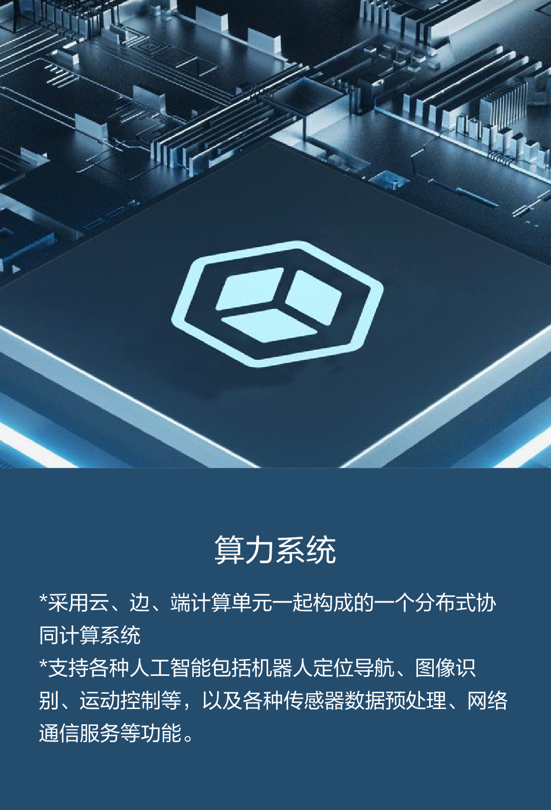 *支持各种人工智能包括机器人定位导航、图像识别、运动控制等,以及各种传感器数据预处理、网络通信服务等功能。
